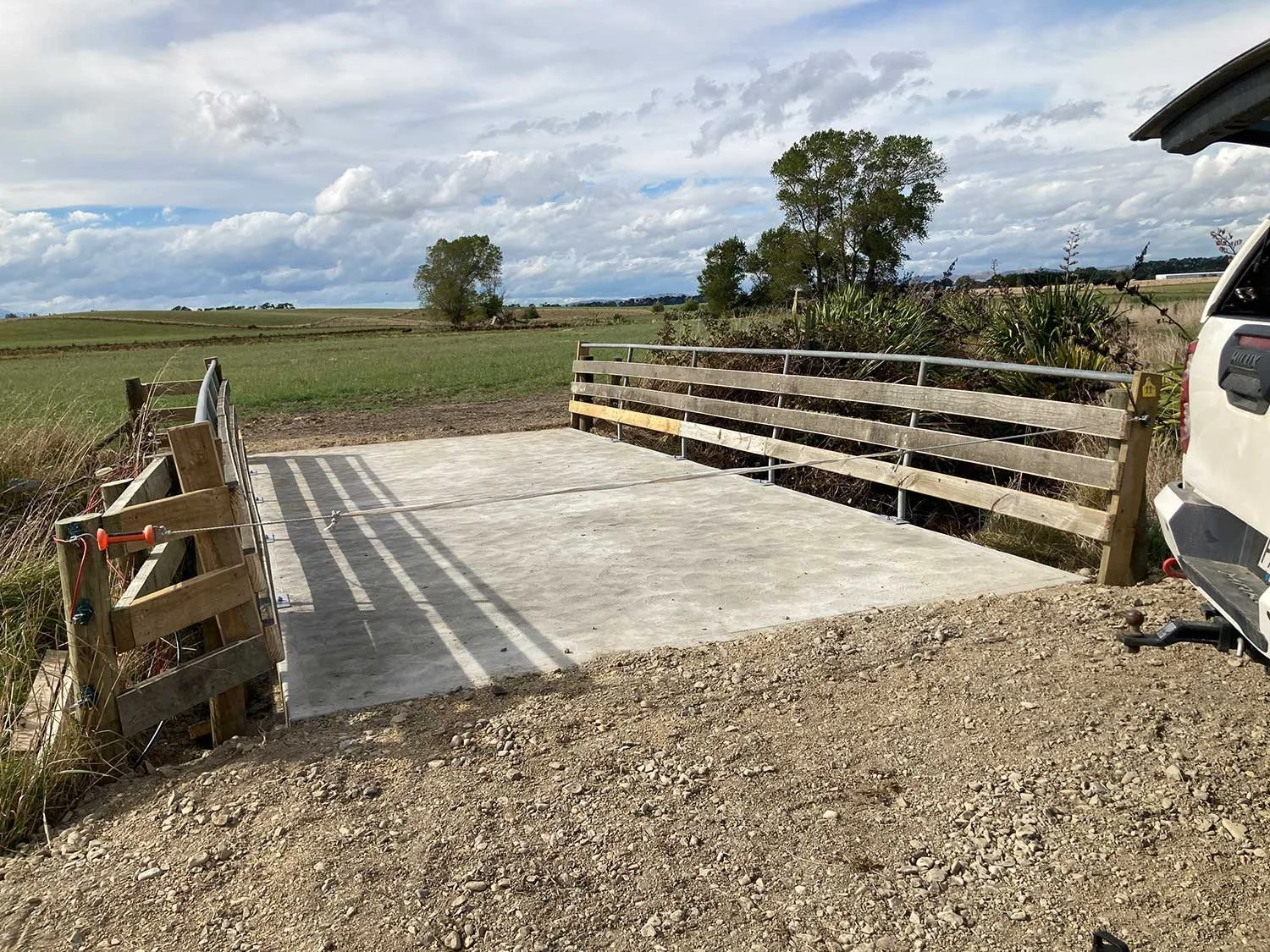 At Wingpoint, Rycroft Construction was engaged to replace a collapsing culvert with a permanent, reinforced concrete bridge structure. The project involved constructing a heavy-duty concrete slab directly over the existing culvert, ensuring continuous and safe access even once the culvert failed. The result is a low-maintenance, long-term solution designed to handle regular rural traffic and variable ground conditions.